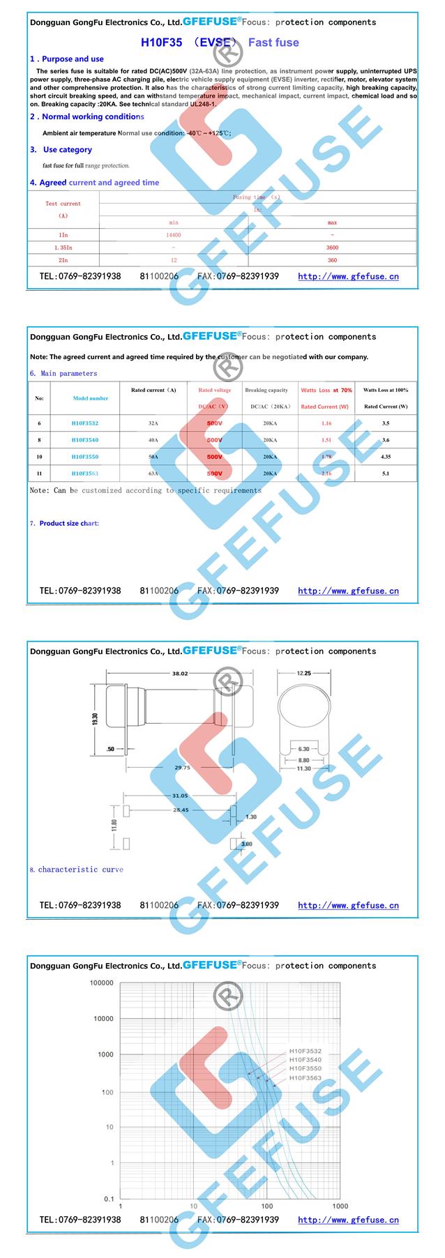 該系列熔斷器適用于額定DC(AC)500V (32A-63A)線路保護,作為儀表電源,不間斷UPS電源,三相交流充電樁,電動汽車供應(yīng)設(shè)備(EVSE)逆變器、整流器,電機,電梯等系統(tǒng)等綜合保護,還具有限流能力強、開斷能力高、短路分斷速度快等特點,并能承受溫度沖擊、機械沖擊、電流沖擊、化學負荷等。分斷容量:20KA.參考技術(shù)標準UL248-1